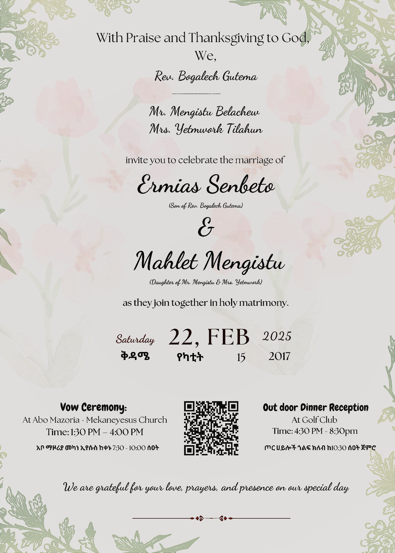 With joy and gratitude, we invite you to our wedding as we begin our new journey together. Your presence will be a cherished blessing on our special day!